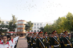 9月7日清晨,蓝天白云,群鸽云集,我校各年级部5000余名师生齐聚东办公楼广场,举行新学年良好开端动员大会暨第一次升旗仪式。随着国旗冉冉升起,副校长杨守苗发表了良好开端动员讲话。
