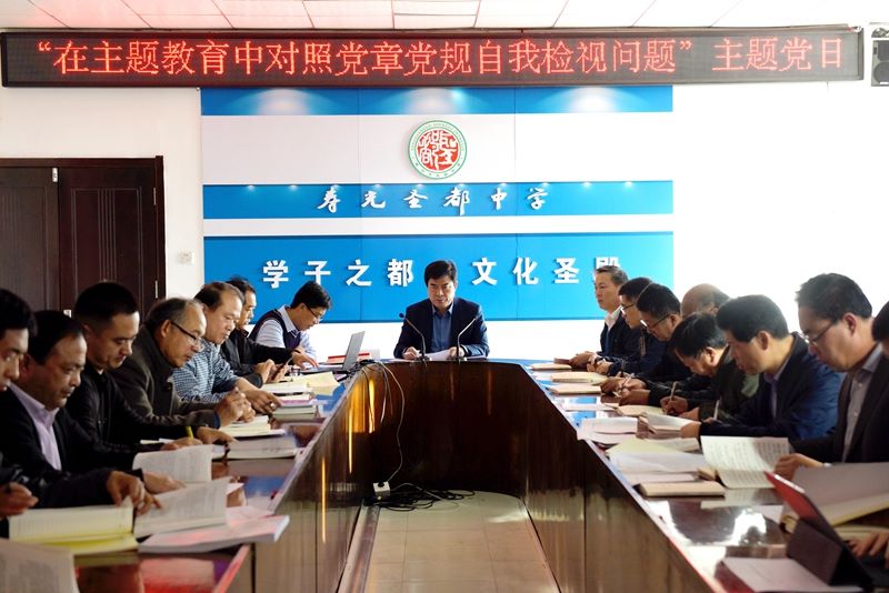 11月18日下午,我校党委行政支部在四楼会议室召开“在主题教育中对照党章党规自我检视问题”主题党日活动,支部书记刘云祥主持并对新修订的《中国共产党纪律处分条例》做了解读,李天泽同志带领大家学习《弥水警钟》《挺纪在前》相关内容。校长、党委书记李耀华偕支部党员参会。