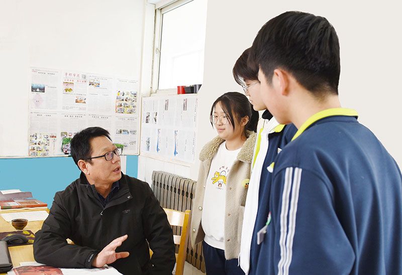 虽然是一名老教师,刘长义身上却有着不输年轻人的气质,为拉近与学生的距离,他总是保持微笑,有时走起路来会一蹦一跳,有时说起话来突变话风,总能逗得大家哈哈笑,就像一个“老顽童”。初步接触,同学们都因他的幽默可爱而愿意打开心扉。上课时,他总会在语文知识中穿插爱国教育、理想信念教育、意志品质教育、感恩教育等,并针对具体情况召开主题班会,每一次语文课或者班会,孩子们都听得心潮澎湃,时间久了,他们变了,爱笑了,个个都充满了自信,早自习时精神抖擞,日常学习干劲十足,他的课堂,就是鼓励学子不断进步的加油站!