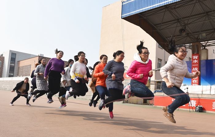 上午9点,裁判长李爱萍宣读比赛规则后,比赛正式进行。美丽自信、精神抖擞的女教师们,团结默契,随着长绳的起落轻盈跳跃。春意盎然的体育场,在观众们的叫好声中变成了欢乐的海洋。经过热烈角逐,复读一部、教育处分别荣获跳绳一、二名,慈春英、徐增霞老师分别荣获掷包打靶一、二名,王虹、齐玉平、邱桂凤和周阿妮老师分别荣获双人踢毽一、二名。