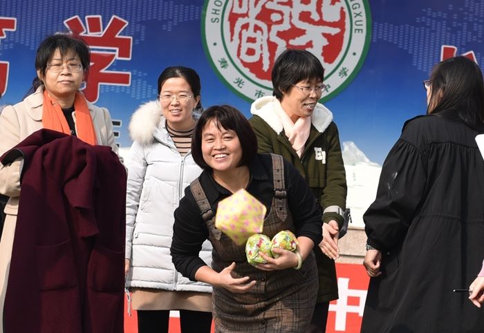 3月4日,生机盎然,万象更新,我校“健康、美丽、感恩”主题庆“三八”趣味比赛在体育场举行。校领导傅伟宗热情致辞,女工主任袁珊主持,6支跳绳代表队、7支掷包打靶队、21个双人踢毽小组共168名女教职工参加了比赛。