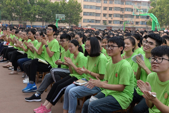 在热烈的掌声中,董校长阔步走上主席台向同学们鞠躬致礼,代表级部领导、班主任和全体任课老师,并以望子成龙的父亲、大叔的身份给三千学子送上殷切的嘱托:诚信、守纪、平安 ,自信、从容、成功。董绳民说,经过老师们两个学期的深情守望和同学们的不懈努力,我们打破了高考复习后期成绩大概率下滑的魔咒,大家的学业水平及学习能力都有了明显的提高,这给高考的全面胜利奠定了坚实的基础。我坚信,只要静下心,沉住气,按照自己的计划搞好自我完善,用专注而平常的心态投入到高考中,就一定能考取最好的成绩!