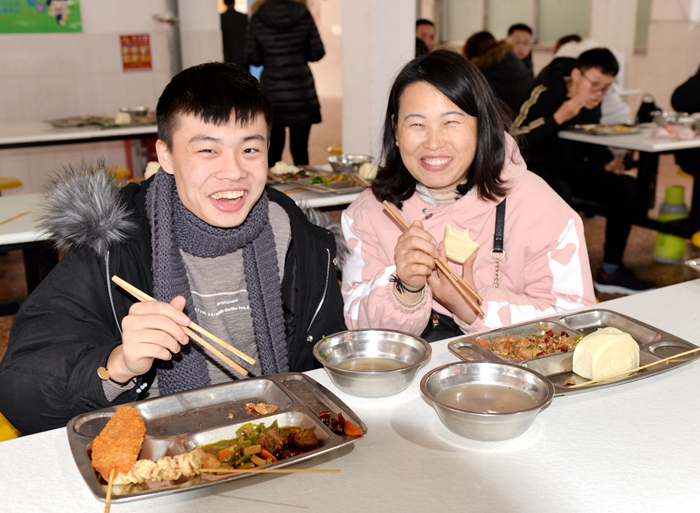 会后,家长们步入餐厅,与孩子们共进亲情午餐。