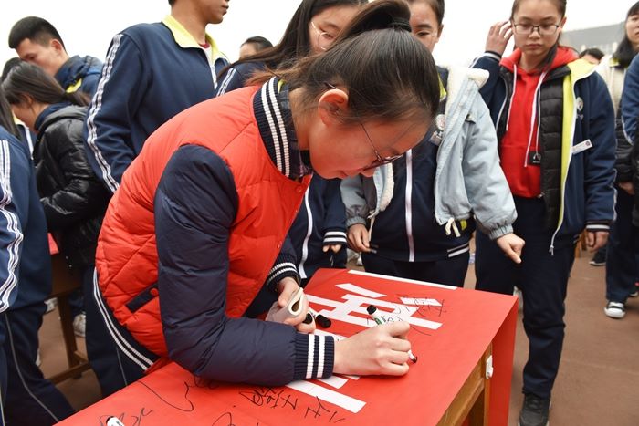 好风凭借力,送我去青云。学生代表李璨以“人生巅峰,舍我其谁”为主题做了热情洋溢的发言。随后,全体同学在大红横幅上庄重地签下自己的名字。