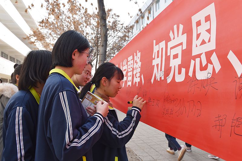 王新光就本次活动做了具体安排后,各班团支书组织同学们分别在指定地点的主题横幅上郑重签下了自己的名字,纷纷表示践行雷锋精神 ,对党永怀感恩之心,奋发图强,学有所成,做新时代的雷锋接班人,用实际行动来回报社会。