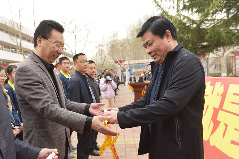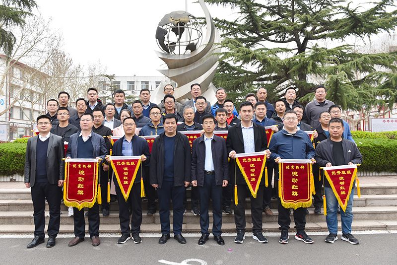 王新光宣读获奖名单后,李耀华校长为王耀文、郭梁两位级部主任颁发了“优秀级部”流动红旗,为王清东、刘长义、柴林华、唐金刚等32位班主任颁发了“优秀班级”流动红旗。