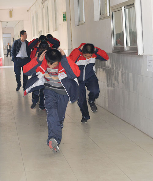 为进一步强化安全校园建设,提高学生安全应变能力,由董绳民校长担任总指挥,宋伟副书记任副总指挥的大型地震逃生应急疏散演练于2015年10月28日下午举行。潍坊社安防火宣教中心李笑主任作演练总结并进行防火、灭火指导,高一一部、高二二部共20个班的全体师生参加演练。