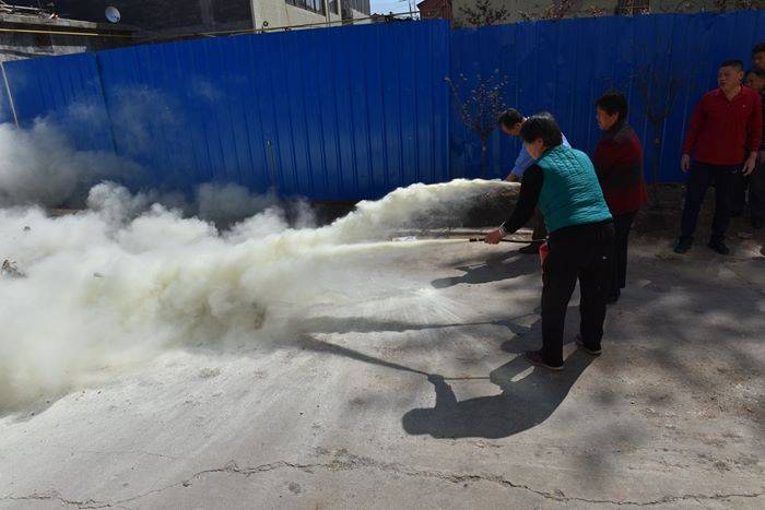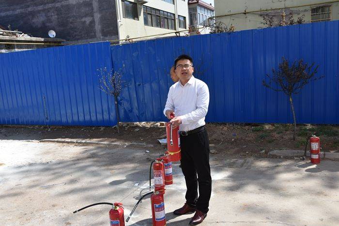 刘建忠详细讲解了灭火器的使用方法和注意事项后,现场进行了灭火演示,参加演练的人员按照演练规程,依次进行了实战灭火训练。