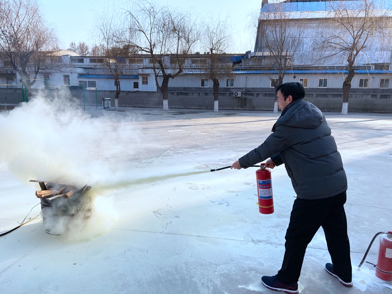 刘建忠首先向参训人员重申了火灾的严重危害性,要求大家时刻警醒,努力消除安全隐患,维护学校安全。刘建忠详细讲解了灭火器的使用方法,并现场示范灭火,参训人员最后进行了实际操作。