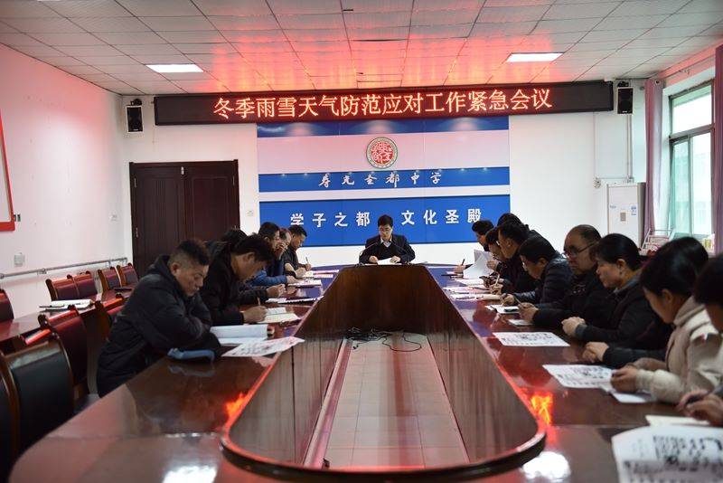16日上午9点,我校在行政办公楼四楼会议室组织召开冬季雨雪天气防范应对工作紧急会议,校长助理刘云祥主持并部署雨雪天气防范工作,办公室、教学处、教育处、总务处、四个级部、安全管理中心、膳食处负责人参会。