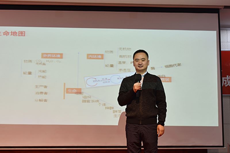 朱晓鹏以《生命地图核心模型》为题,首先从提升阅读能力、加强核心知识理解、锻炼独立思考能力、提高书面表达水平等四个方面入手,结合高考真题,用三维坐标生命地图系统生动地诠释了题目设置的各类情景问题。在深入浅出地讲解中,朱晓鹏将生物与生活实际相联系,着重突出了对中心法则的思考与突破,最后,他将地图回归基础、回归课本,从而将生命的奥秘归结为考题奥秘。整场演讲解说生动有趣,例子典型鲜明,同学们听得热血澎湃、意犹未尽,大讲堂结束后,朱晓鹏和部分学生展开了面对面交流。