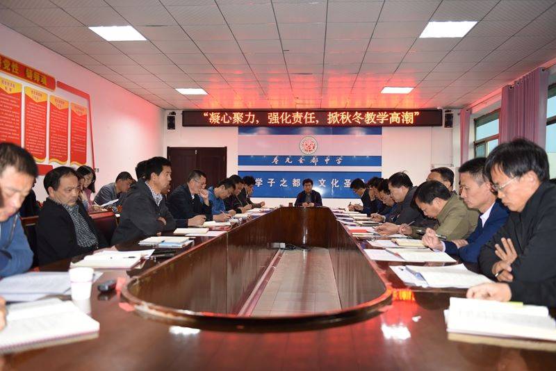 秋末冬初,乍寒还暖,正是学习攻关好时节,也是入学两个多月后的复读生最容易产生懈怠情绪的时候。为此,学校于11月7日召开“凝心聚力,强化责任,掀秋冬教学高潮”主题办公会,拉开了冬学高潮的序幕。校长、党委书记李耀华作主题讲话并为管理工作提出7项要求,马友会、张建平副校长对秋冬教育教学工作提出要求,张海涛、刘云祥等领导做冬学工作安排,全体中层以上干部参加了会议。