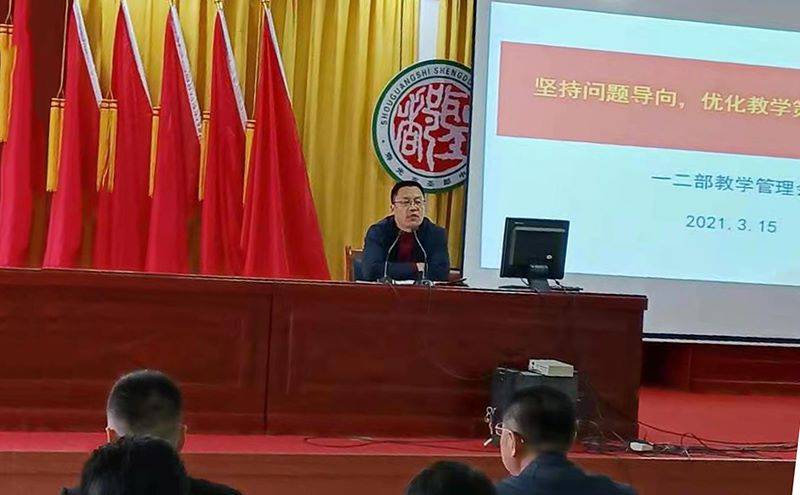 郎旭军“新高考命题的基本认识与启示,坚持问题导向、提高备考精度,认清形势、积极转变,明确思路、提档升级”等四大方面,对复习策略方法做了科学细致安排并重点强调了规划、团队与落实的重要性,要求老师们调整心态,坚持问题导向,明确教学思路,及时有效展开二轮复习。