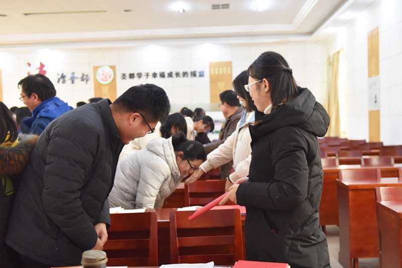 首先,师训处主任慈建宇宣读了《圣都中学“青蓝工程”实施方案》,并从“结好对子,让青年教师成长有助力”,“积极组织青年教师开展听评课、示范课活动”,“发挥学校内名师带动作用”,“开展青年教师读书活动,拓宽青年教师视野”,“组织专题讲座”,“开展高考题研究、讲解、笔试竞赛”等六个工作重点提出了具体要求。