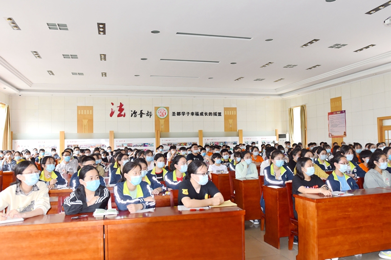 在报告西厅,周阿妮老师以现场蒙面互动别开生面地拉开了讲座的序幕。随后,周阿妮深入浅出地分析了成绩不见起色、学习无法投入、失眠、焦虑等问题与困惑,结合不同的成长经历、教育背景、思维模式,提醒同学们努力≠废寝忘食;坚持≠硬撑;状态不理想≠高考会失败,要学会接纳现状,灵活处理,积极应对。