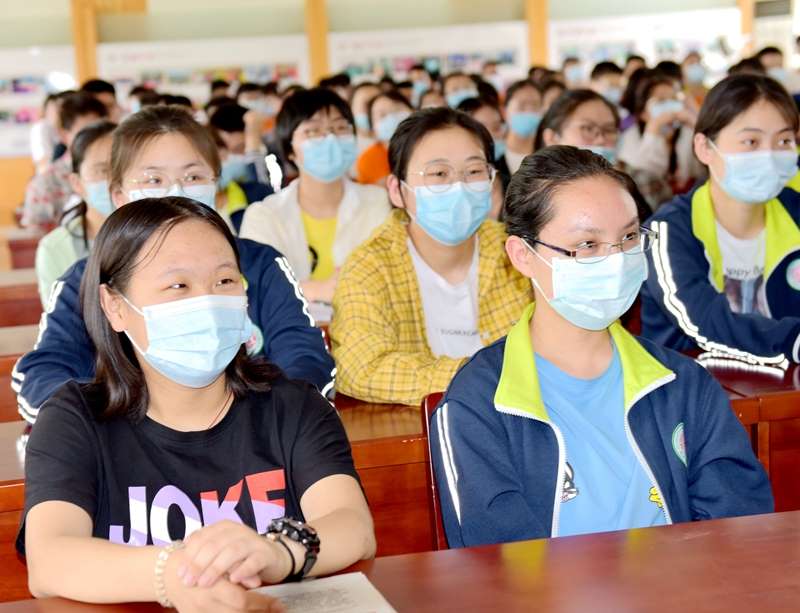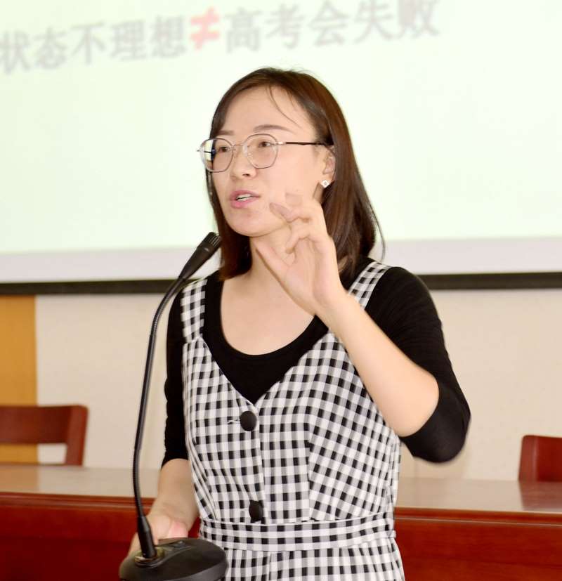 在报告西厅,周阿妮老师以现场蒙面互动别开生面地拉开了讲座的序幕。随后,周阿妮深入浅出地分析了成绩不见起色、学习无法投入、失眠、焦虑等问题与困惑,结合不同的成长经历、教育背景、思维模式,提醒同学们努力≠废寝忘食;坚持≠硬撑;状态不理想≠高考会失败,要学会接纳现状,灵活处理,积极应对。