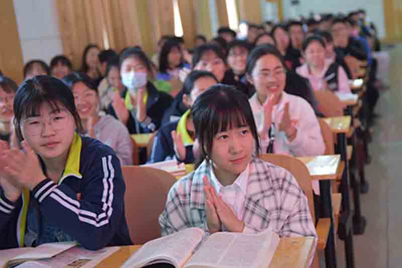 慈建宇以《修心炼胆,知行合一》为主题,首先对《西游记》不同人物的特点进行剖析,并与复读生活相结合,提出了修心炼胆的重要性;随后对王阳明“心即理”、“格物”、“知行合一”、“致良知”等核心心学观念进行了阐述,教育同学们在当下的学习和未来的为人处世中,都要坚守本心,凸显诚意,为善去恶,去伪存真;最后以李大钊事迹为例,号召同学们点燃青春斗志,努力拼搏,自强不息。整个过程引经据典,气氛活跃,互动灵活,即融入了学科知识,又传授了修心做人的道理,同学们听得热血沸腾,意犹未尽。大讲堂在热烈的掌声中结束。