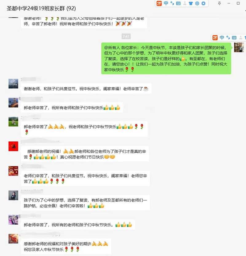 团圆不在别处,当下即是全部。从学校领导到班主任再到家长......家校共育,温情万千;全程陪伴,共此婵娟。
