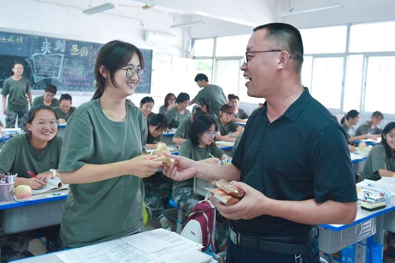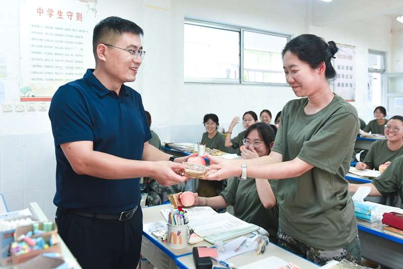 9月17日农历八月十五,党委副书记、副校长锡洪武,副校长、纪委书记张建平,党委委员郎旭军代表学校为自愿留校的学生发放了月饼、苹果和一封盛满祝福的书信。