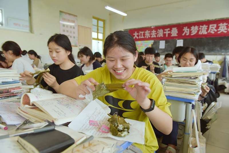 班主任们带着学生志愿者,自发组织起“送粽到班”活动。他们捧着刚出锅的热粽,穿行在教室间,将这份端午的温暖,亲手送到每个学生手中。