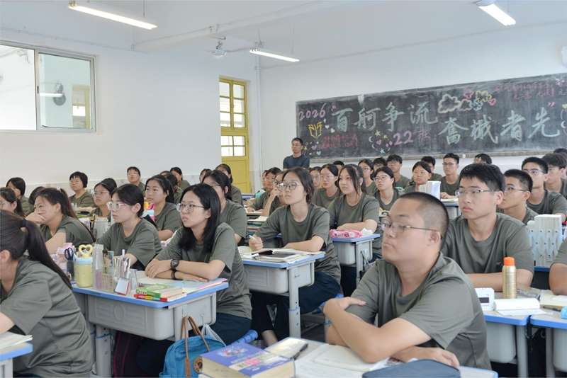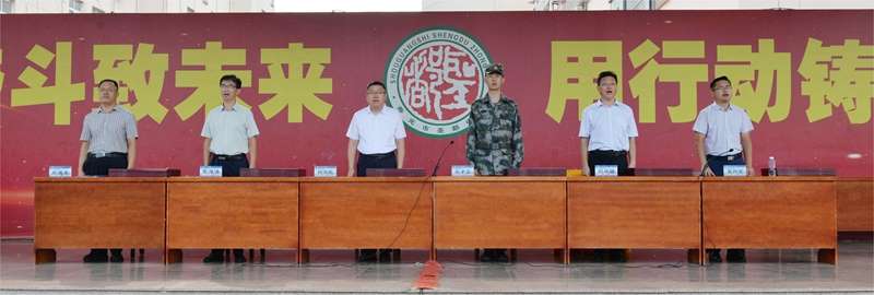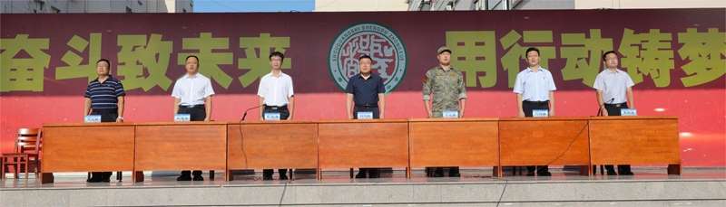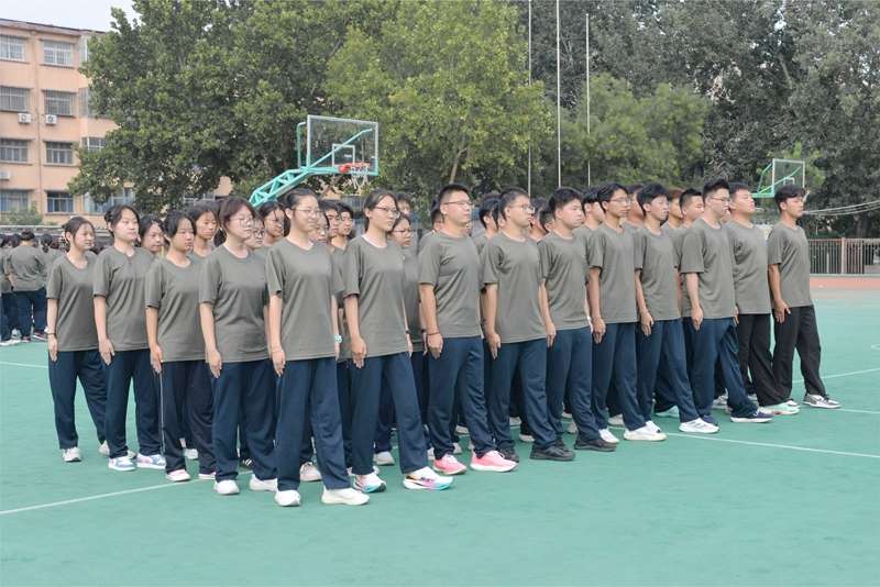 张海涛作动员讲话。军训是意志的淬炼,是成长道路上不可或缺的重要一课。它既是砥砺品格的“磨刀石”,帮助新生扣好高中“第一粒扣子”,助力复读生重整行装再出发;也是凝聚集体的“黏合剂”,在共同训练中培育深厚的团队精神;更是点燃家国情怀的“启航站”,让同学们在戎装体验中深刻理解担当与使命。学校对全体参训同学提出四项要求:严守纪律、刻苦训练、团结互助、科学安全。希望同学们以军训为熔炉,锻造坚毅品格,磨砺顽强意志,为未来的成长与发展奠定坚实基础。