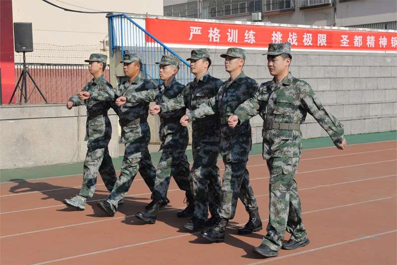 号令有力,目光坚毅;行进整齐,气势如虹。这场集训成果的集中展示,淋漓尽致地彰显圣都新生本色。