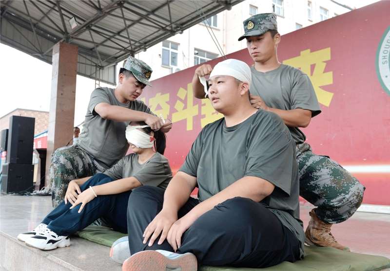 军训淬炼体魄,讲座点亮思想。学校于军训期间精心组织系列主题教育,特邀学校法治副校长、城区派出所教导员曹刚,寿光市人民医院急诊科副主任张海,寿光市消防救援大队消防员程永超,寿光公安青蓝宣讲团张金辉,以及学校学生成长指导中心邱桂凤,分别从法治、急救、消防、禁毒及心理调适等维度展开讲授。沉浸式的互动体验让知识可触可感,切实为成长注入力量、筑牢根基。