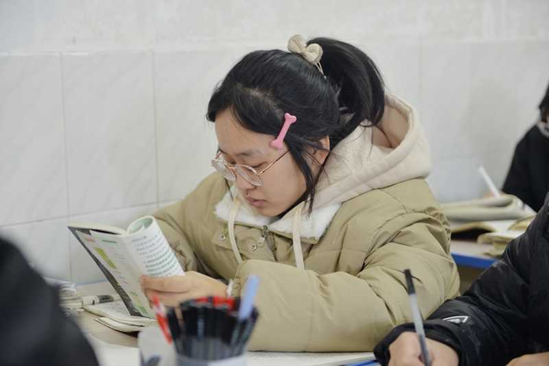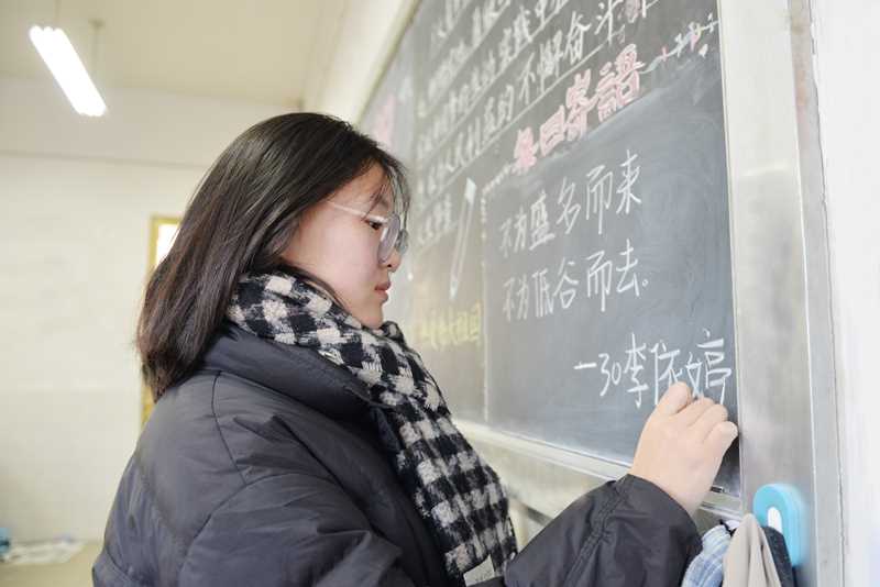 走到班级门口,首先看见外侧墙壁的宣传栏,内容涵盖班级理念、班主任寄语、学哥学姐励志句、家长的话等;进入班级,墙上是时政解读、政策分析等文化课资料拓展;身后的黑板是师生自由发挥的园地,或教师寄语,或热点图文,或每人每天的励志语句,都深入人心。