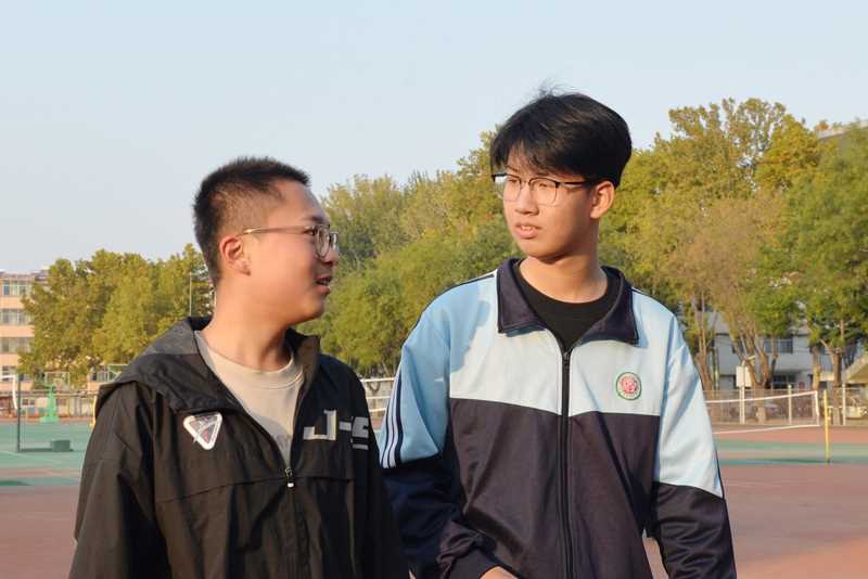 某个课间,七八个学生围在一起,不知讨论着什么。凑近一看,原来是班长张焕浩正在分享一道题的解题方法。他巧妙的思维和有趣的讲解,令旁边的同学听得津津有味。