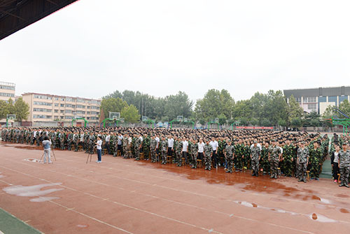 9月5日上午,2015新生军训动员大会在操场隆重举行。军训教官领队与学校领导出席会议,高一、高二全体参训同学和班主任近3000人一起参加。