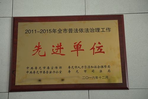 我校荣获2011—2015年全市普法依法治理工作先进单位