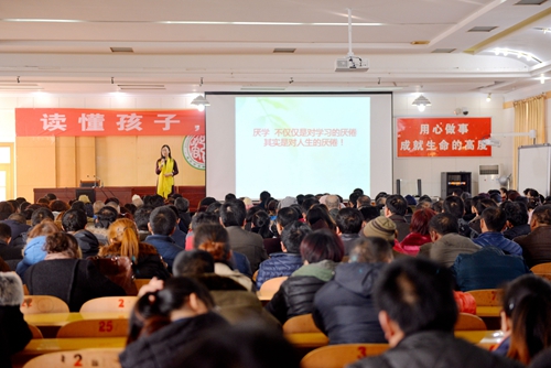 1月20日上午八点,我校学术报告厅座无虚席,家长们纷纷慕名而来,聆听学生成长指导中心主任、萨提亚模式父母成长与亲子导师李百琴老师的精彩分享。会议由学校家庭教育分管领导刘云祥主持,高一全体班主任、家长参加。
