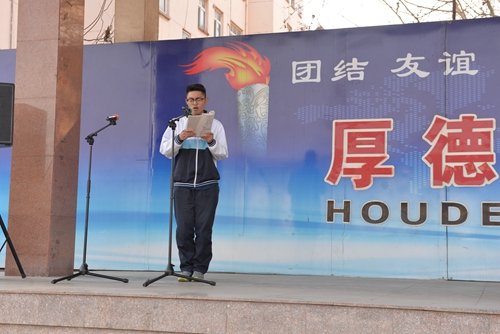 黄沙百战穿金甲,不破楼兰终不还。学生代表王迎港的激情表态余音未落,在邴晓冉、刘家浩振奋的领誓下,同学们铿锵有力的誓言,响彻体育场的上空。