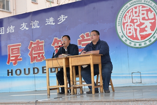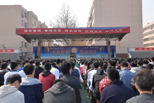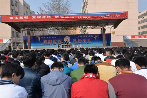 3月19日,复读部二轮复习指导级会在体育场举行,级部主任杨益祥、郎旭军做复习指导报告,副主任张乐刚、王志伟主持,全体复读生聆听了报告。