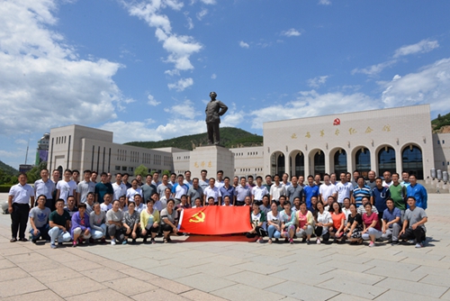 8日下午2点,在经过九个小时的长途跋涉后,队伍到达河北省平山县西柏坡,党员们穿上军装后整齐有序的参观了西柏坡纪念馆,站在毛泽东、周恩来、朱德、刘少奇、任弼时等五大书记的铜像前,党建办主任董良源带领全体党员重温了入党誓词。