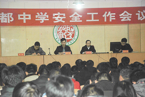 针对前段时间安全隐患排查发现的问题及上级会议精神,圣都中学于2014年12月9日晚在学术报告厅召开安全工作会议,党总支书记傅伟宗主持,副校长吴扩林作专题报告并布置近期安全工作,校长黄本东从关心和爱护学生、帮助每个学生树立成长自信的角度,剖析了诱发安全隐患的深层次因素,就依法从教、心理安全、岗位安全问题提出了指导意见。