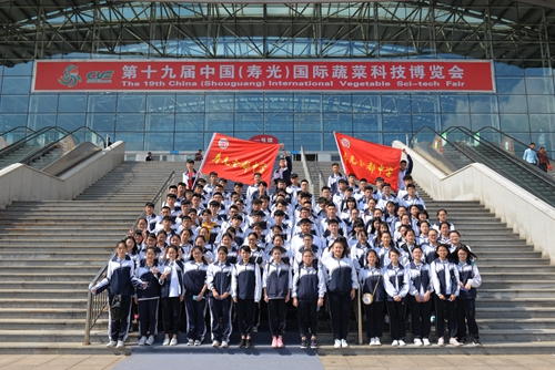 5月2日下午,我校高二500多名师生由校长助理刘云祥带队赴第十九届中国(寿光)国际蔬菜科技博览会研学,参观蔬菜产业的高新技术成果,领略家乡先进的农业科技力量。