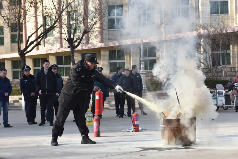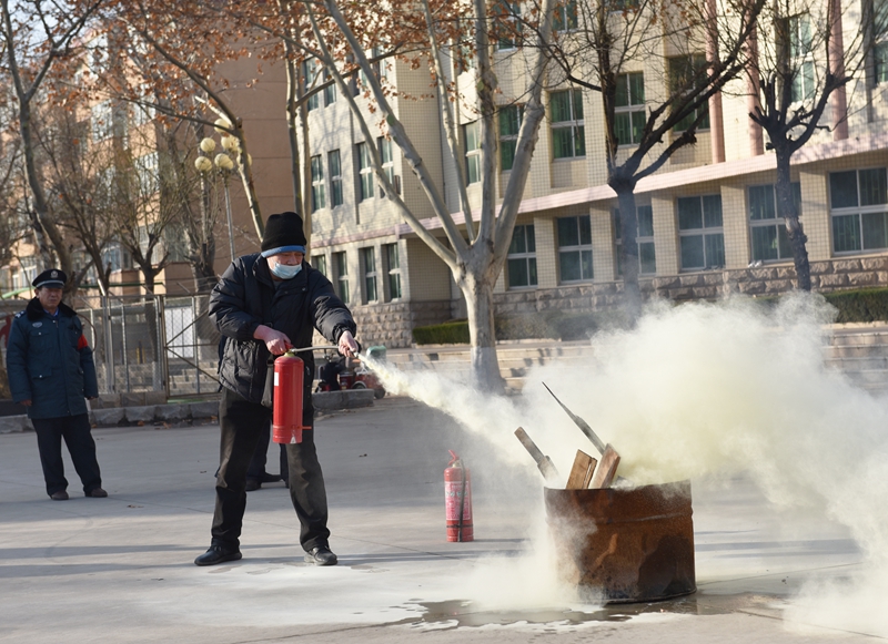 刘建忠首先向参训人员重申了火灾的严重危害性,要求大家时刻警醒,努力消除安全隐患,维护学校安全。刘建忠详细讲解了灭火器的使用方法,并现场示范灭火,参训人员最后进行了实际操作。
