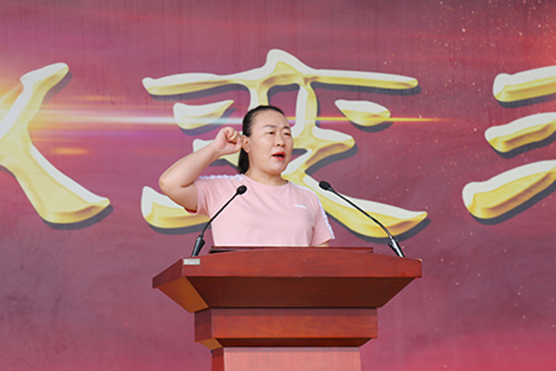 教师张洁、学生巴梦宇分别代表裁判员、运动员上台宣誓。