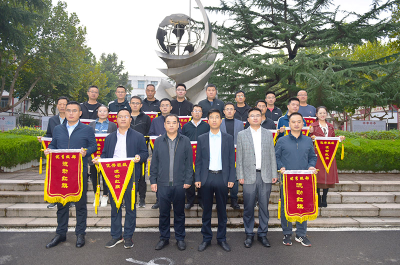 伴着庄严的国歌,鲜艳的五星红旗冉冉升起。李耀华校长为陈石蕾朱晓鹏两位级部主任颁发了“优秀级部”流动红旗,为郎旭军、郑群山、王明昌陈杰18位班主任颁发了“优秀班级”流动红旗。