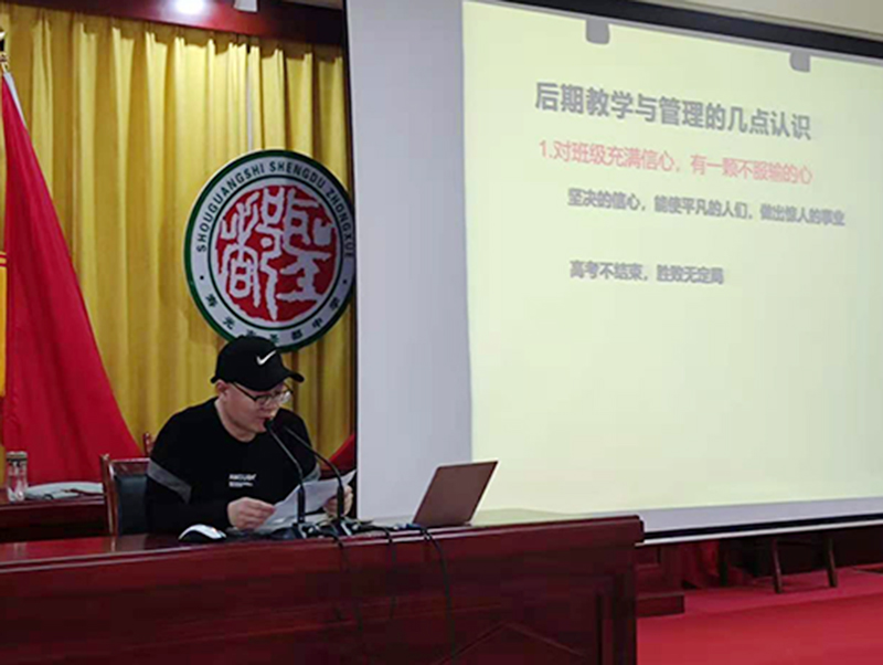两位级部主任首先通过数据展示,对四个级部总分上线情况、相同组合班级总分上线情况、相同组合同一学科上线情况等三个角度对本部成绩作了深入剖析,随后针对班级之间、学科之间存在较大不平衡现象进行分析并提出了要求,最后对边缘生的抓促、加强集体教研、高效课堂的开展以及提升执行力等后期教学管理工作做了详细部署。