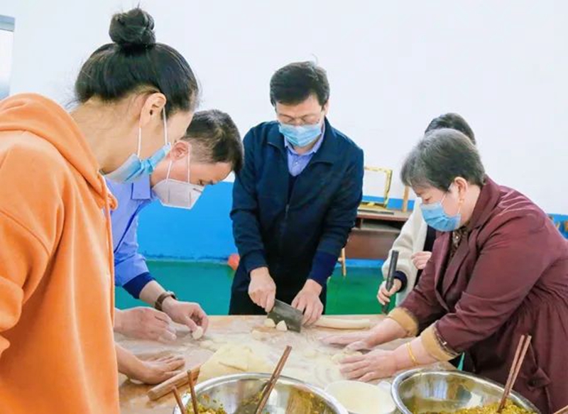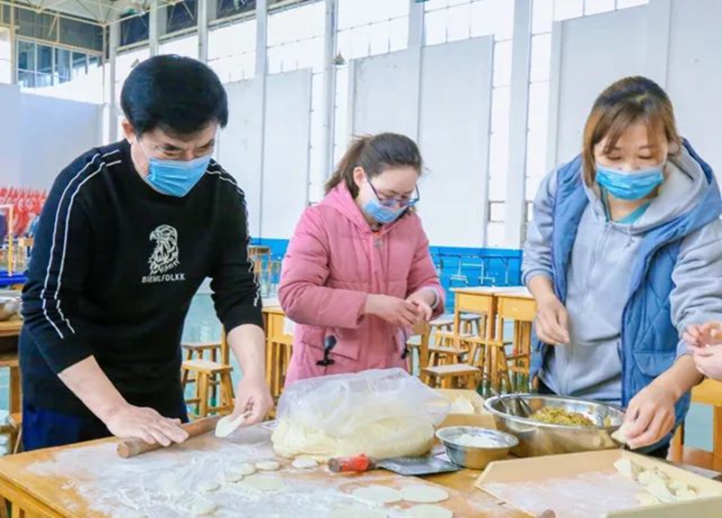 恰春水流碧,学校特别为住校教职工及家属提供了面、饺子馅、面板等材料,分部门分组进行了“把春天包在饺子里”的友谊赛。