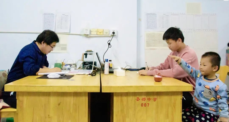 3月23日晚20:30,圣都中学六号教学楼三楼办公室,一个四岁的男娃,在上高一的哥哥陪伴下,安静地玩着玩具,他们的父亲——柴林老师,教学一部物理组教研组长,12班班主任、物理老师,正在为50名圣都学子批改作业。