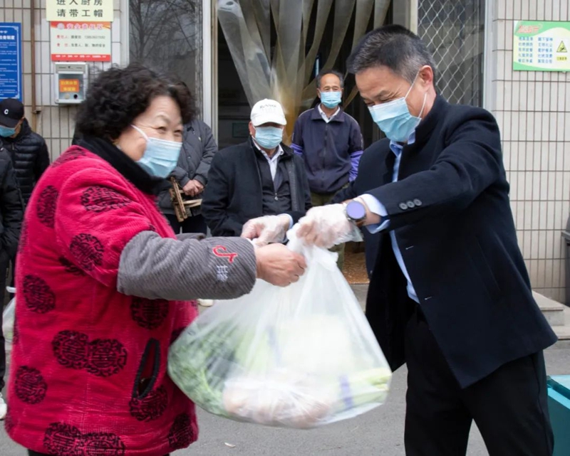 于是,楼管员收到了学校派发的馒头和新鲜蔬菜;保安师傅的一日三餐,有专人配送到工作岗位;住校教职工带来的娃娃吃饭一律免费;膳食处牵头成立惠生服务小组,帮学生代购日常生活用品及牛奶等营养品……