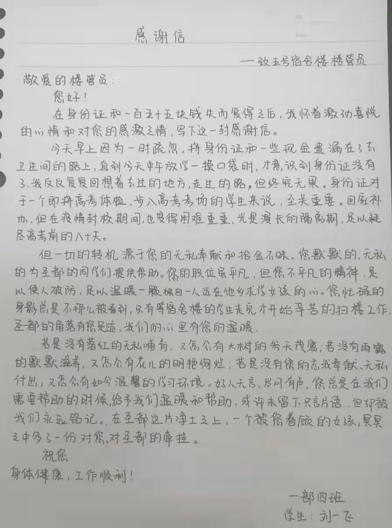 这一份温良的举动,圣都人感念在心。教育教学秩序一如往常,学生们更加懂事好学,老师们更加敬业精干。