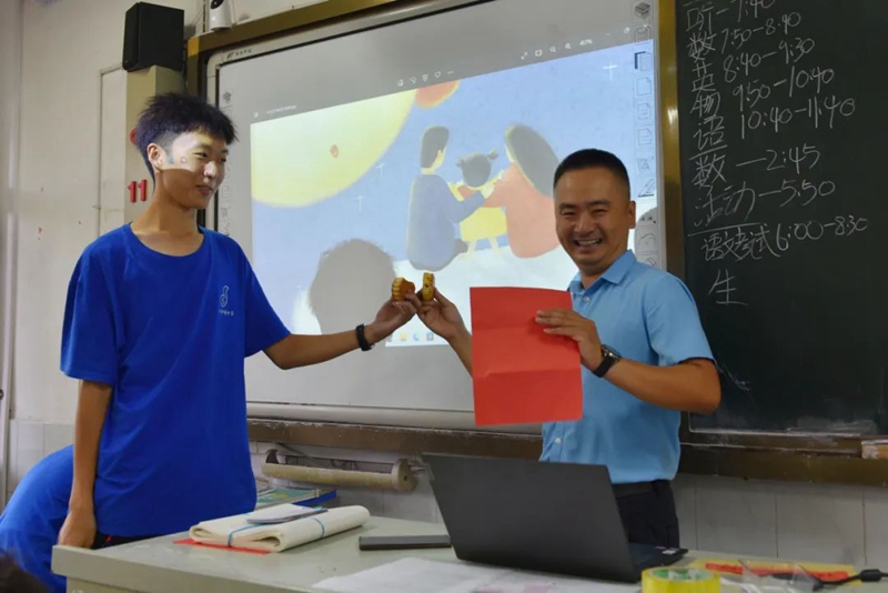 对,这就是一片心呀,一片愿你梦想成真,盼你励志成才的心,一片愿人圆,盼心圆,祝梦圆的心。幸福的月饼,幸福的中秋,这幸福离不开老师的陪伴、坚守和关爱,他们舍小家顾大家,选择了坚守和付出,在这特别的双节里,也让我们一起道一声:老师您辛苦了!