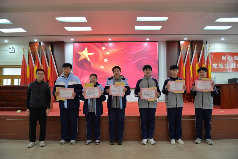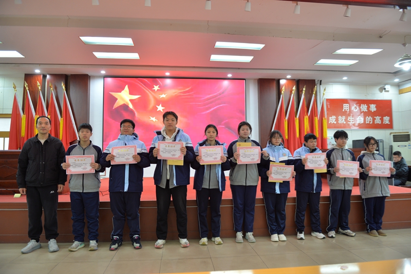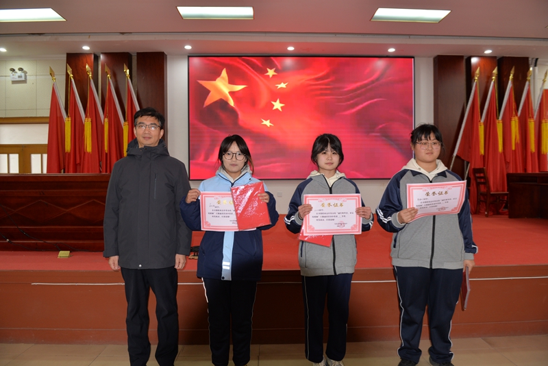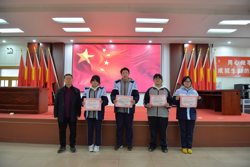 比赛采用现场评分制,评委从朗诵内容、语言表达、技巧运用、台风展现及形式创意五个维度进行综合评定。经过公正评审,共评出一等奖3名、二等奖6名、三等奖9名,并设创意奖、台风奖各2名。徐军老师宣布获奖名单,副校长张海涛、年级副主任柴林华、年级主任王文豹、徐军老师依次为获奖学生颁奖并合影留念。