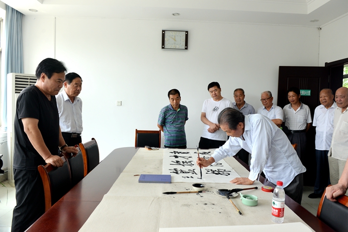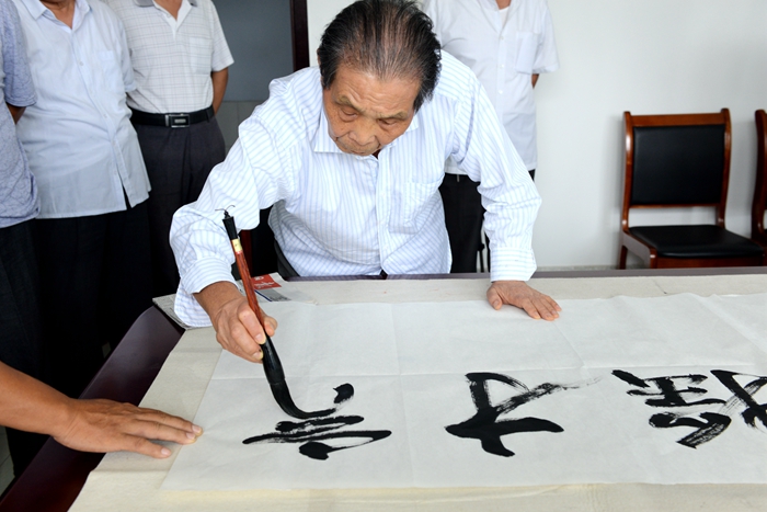 山东省政协原常委,潍坊市委原副书记、潍坊市政府原市长、寿光市原县委书记、首届校友代表王伯祥回忆了五中建校之初的点点滴滴,并现场挥毫泼墨,为学校题词送祝福。