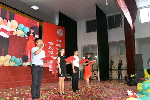 只有在分别的时候,才知道什么叫难舍难分。侯瑞莲、刘晓靖、王亮、刘金刚四位老师上台为同学们送上了最诚挚的祝福。令人们惊讶的是:老师们竟然没有“发言”,而是饱含深情地来了一首诗歌朗诵:《老师为你祝福》。
