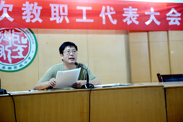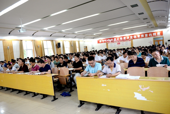 8月7日上午,学校在学术报告厅举行全体教职工大会,传达市教育局《2016年中小学教师县管校聘交流轮岗工作实施方案》及圣都中学岗位竞聘工作实施方案。董绳民主持校长会议并讲话,杨守苗副校长作县管校聘暨学校岗位竞聘方案解读,380名在编在岗教职工参加了会议。